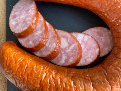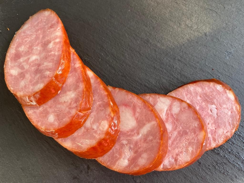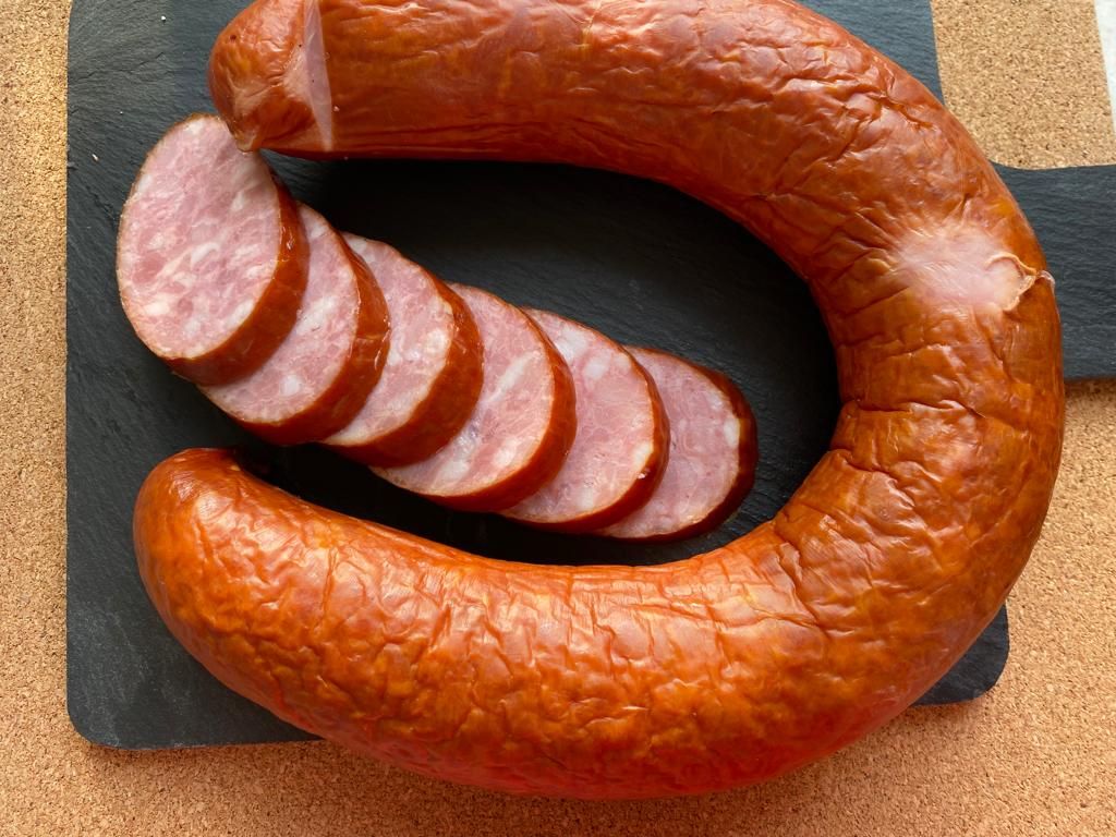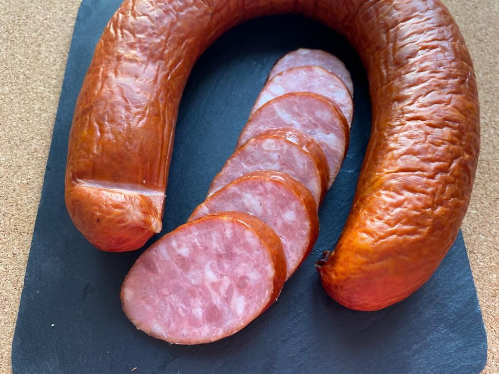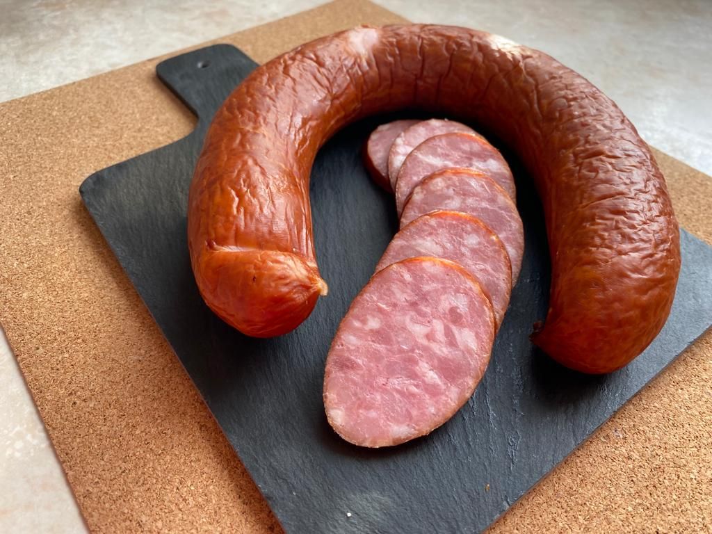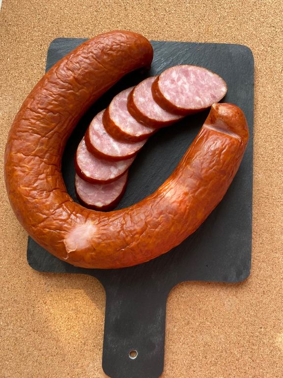 Настоящая фермерская колбаса из фермерской свинины и говядины. Неповторимый вкус настоящий колбасы, в которой нет никаких химических добавок, а только натуральные специи. В ней вы почувствуете настоящий вкус мяса, а не химических добавок, которые часто продаются в различных магазинах. Из нашей колбасы получаются вкусные и сытные бутерброды, а если колбасу есть с нашим цельнозерновым и бездрожжевым, то получится очень сытный перекус.