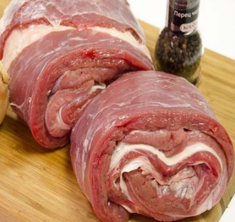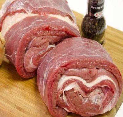 Итак, у вас оказался кусок пашины от нашего ягненка. Даже если он совсем небольшой, из него получится вкусный рулетик. Времени и усилий на его приготовление уйдёт совсем немного, а результат Вас приятно удивит. В готовом рулете Вы не почувствуете ни плёнок, ни запаха бараньего жира, который многие не любят: плёнки размягчатся, большая часть жира вытопится, а небольшой запах уберут правильно подобранные травы. Раскладываем мясо на доске. Солим, перчим, посыпаем сушёной или свежей зеленью. Я рекомендую мяту и тимьян - это те самые травы, которые убирают сильный запах ягнятины. Мяты можно класть много, а вот тимьян используйте аккуратно, иначе мясо будет горчить. Также вы можете использовать и готовые смеси трав, которые продаются в магазинах. Также нарезаем чеснок тонкими дольками и раскладываем на мясо. Мясо сворачиваем в рулет и перевязываем толстой ниткой, чтобы при запекании оно не развернулось. Я пробовал закалывать зубочистками - не получилось, разворачивается! Так что лучше перевязать. Заворачиваем рулет в фольгу и отправляем в духовку. Запекаем вначале при температуре 200-220 градусов, потом температуру можно убавить до 150-180. В зависимости от размеров рулета время запекания 1-1,5 часа. Проверяем готовность рулета ножом, разворачивая край фольги. Следите, чтобы мясо не пригорело и не пересохло. Вынимаем из духовки готовый рулет, охлаждаем, затем помещаем в холодильник. Рулет из бараньей пашины нарезаем тонкими ломтиками и подаём к столу. Это очень вкусно!