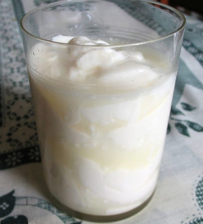 Как же возникла идея сделать натуральную простоквашу? Молоко быстро киснет и портиться, а натуральное молоко тем более. Поэтому люди научились сквашивать молоко, сохраняя его нежный вкус, продлевая его срок хранения. Простокваша от фермера получается в результате брожения молока. Скисая, цельное коровье молоко превращается в продукт с однородной текстурой и нейтральным вкусом. Натуральная фермерская простокваша от коров, питающихся травой и сеном, обладает рядом полезных свойств: содержит витамины А, Е, группу В, минеральные вещества кальций, цинк, фтор, железо, органические и жирные кислоты, а также пищевые волокна. Самое полезное в том, что простокваша из цельного фермерского молока благотворно влияет на процесс пищеварения и нормализует работу желудочно-кишечного тракта, т.к. содержит пробиотики и полезные микроорганизмы. Благодаря этому улучшается пищеварение и всасываемость полезных веществ, уменьшается риск воспалений в кишечнике, улучшается микрофлора человека. При непереносимости лактозы простокваша станет Вашим любимым напитком, потому что молочнокислые бактерии расщепляют молочный сахар и в простокваше его почти нет.