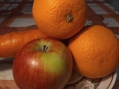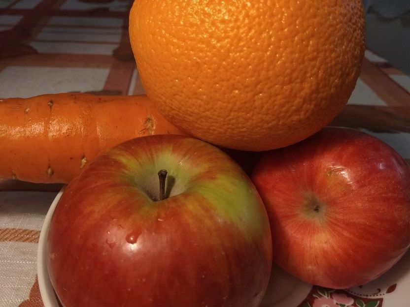 Состав: свежие яблоки, свежие апельсины и свежая морковь