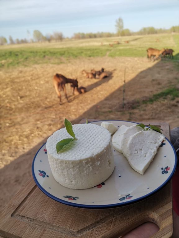 Натуральный молодой сыр по домашнему рецепту из живого цельного козьего молока с нашей фермы.