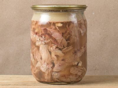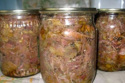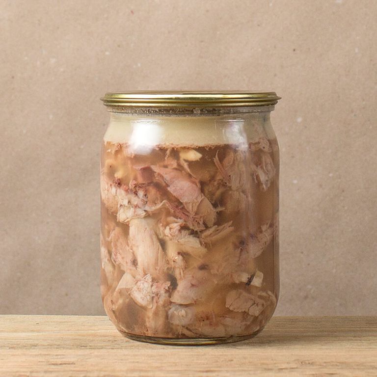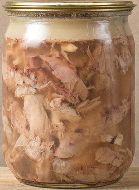 Тушенку из фермерского гуся приготовить не так сложно, так как процесс мало чем отличается от готовки тушеного мяса из любой другой птицы. Для начала мы не менее 30 минут стерилизуем стеклянную банку. Далее нарезаем на небольшие кусочки свежее гусиное мясо и хорошо натираем его солью и перцем. Затем мы кладем гусиное натуральное мясо в банку и чуть-чуть наливаем в баночку воды. Дальше банки мы ставим в специальный аппарат, в котором мясо тушится около 8 часов. Тушенка из гуся, которую можно купить в нашем фермерском магазине, готова.